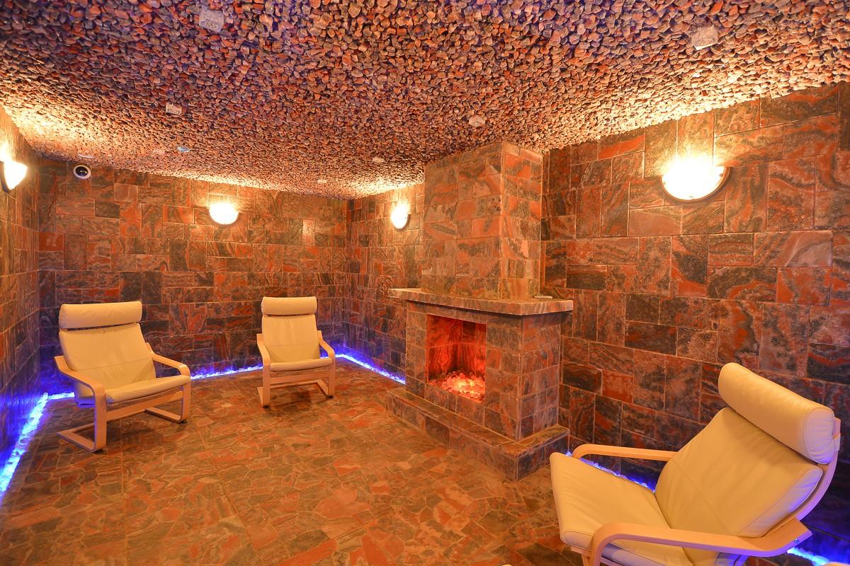 Спелеокамеры, стены которых выполнены из натурального камня сильвинита, рекомендуют посещать гостям с проблемами органов дыхания, частыми простудами и аллергиями. Сильвинит обогащает воздух в помещении отрицательно заряженными аэроионами и микроэлементами, поэтому отдых в спелеокамере улучшает периферическое кровообращение, расслабляет и укрепляет иммунитет.