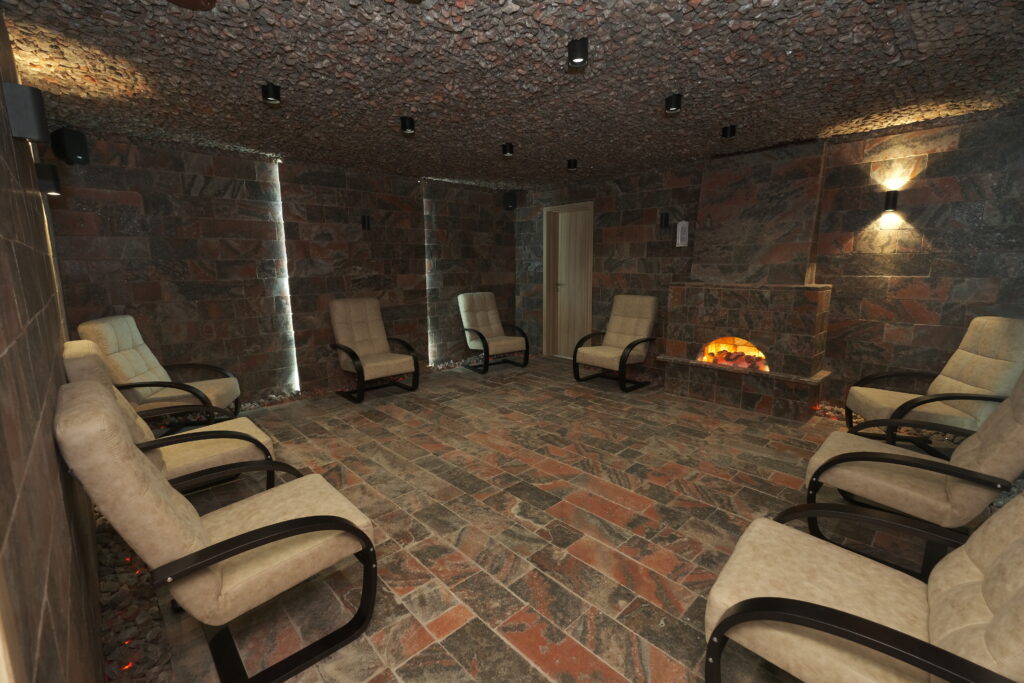 После азотно-кремнистой слаборадоновой ванны я направилась на озонотерапию, которая включена не во все путевки, но в «Люкс» эта процедура есть. После капельницы озонотерапии я посетила ударно-волновую терапию, где на мои колени воздействовали короткими, сильными звуковыми волнами. Затем побывала в спелеокамере, где стены и потолок выстланы из настоящих плит соляных пещер. Данная процедура хорошо помогает очистить легкие и положительно влияет на иммунную систему.
