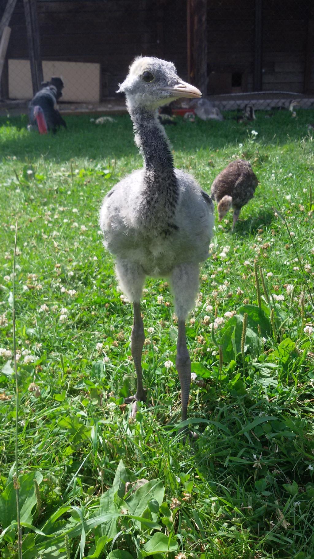 Малыш прекрасно себя чувствует в детском зоопарке «Сибирского подворья», очень общительный и ласковый. На вопрос «Как вы думаете, какой птицей он себя сознает?», работники подворья ответили: «Скорее всего, индюшонком. С индюшатами он проводит больше всего времени, это самые крупные из всех птенцы, хотя двухнедельному журавлю они всего лишь по пояс…».