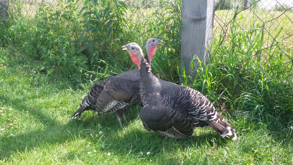 Еще одни новые обитатели «Сибирского подворья» — цесарки, — еще не привыкли к людям, поэтому прячутся от меня в своем новом красивом домике.