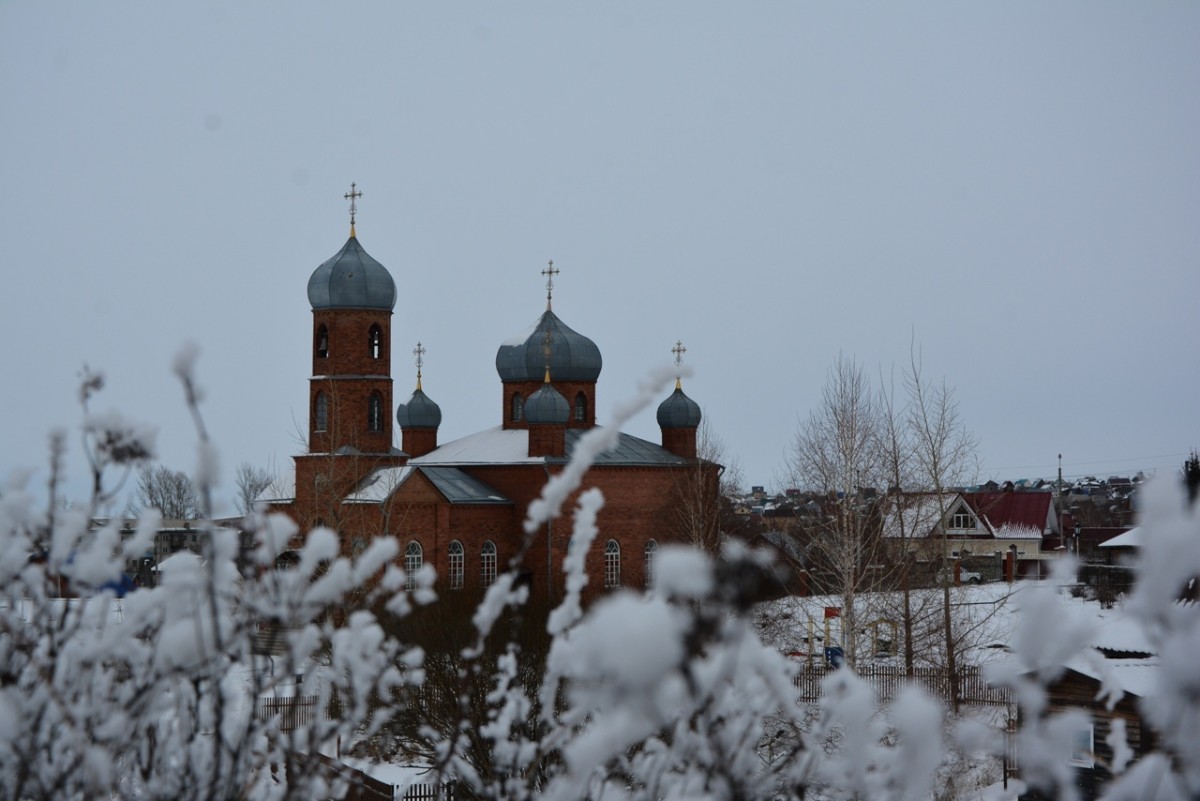 Небольшая кирпичная церковь с пятью куполами была построена в начале 90-х годов на средства прихожан. Храм условно можно разделить на две части. Восточная часть имеет пять куполов: четыре одинаковых купола на одном уровне и один большой, возвышающийся над остальными. Их сравнивают с сыном божьим и четырьмя евангелистами. На всех пяти вершинах установлены православные кресты.