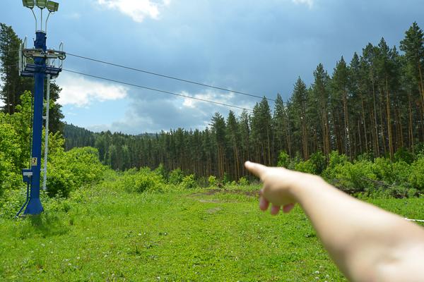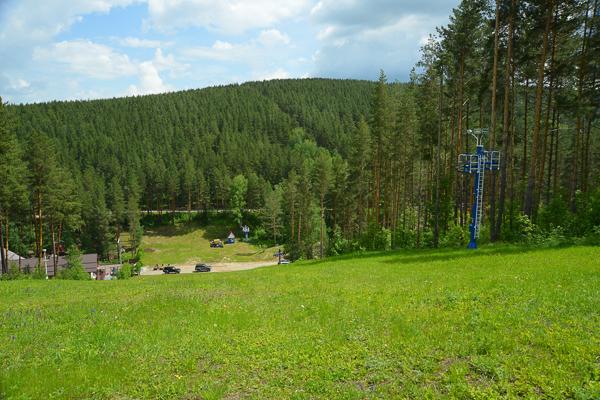 Начинается маршрут на вершине горнолыжного спуска у санатория «Россия». Туда довольно легко подняться по тропинке от санатория. Второй вариант — подняться на эту горку по терренкуру от санатория «Катунь». Вы окажетесь здесь: