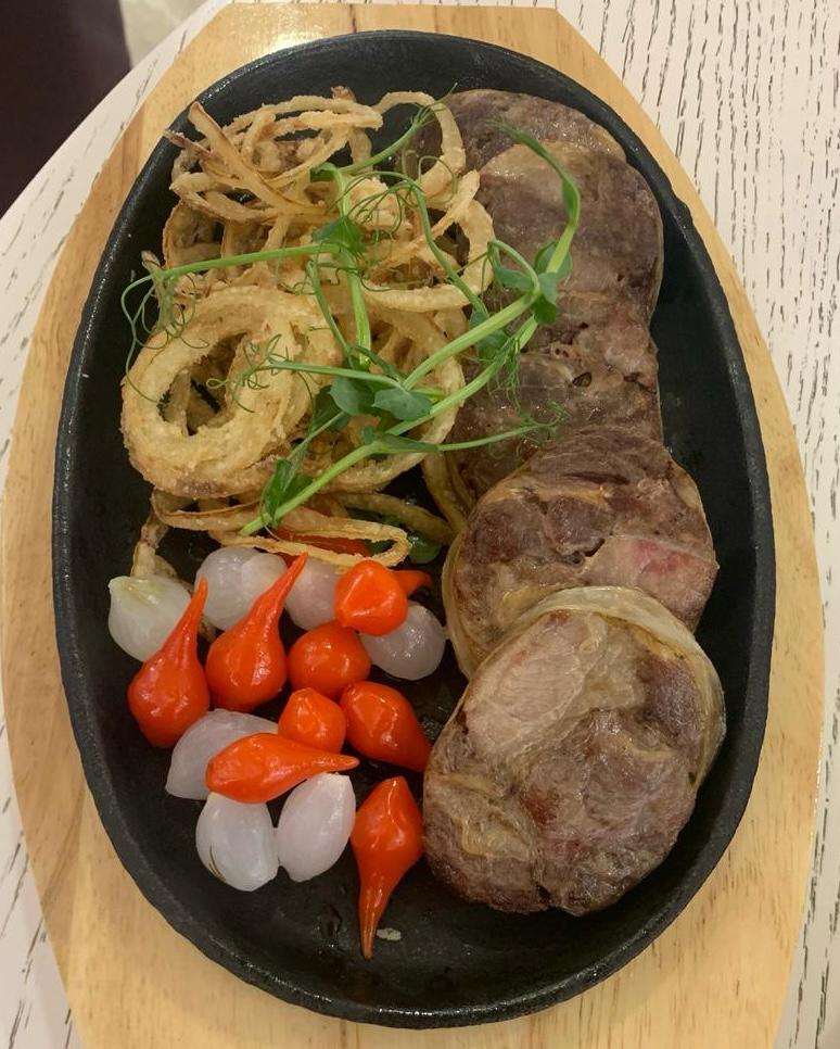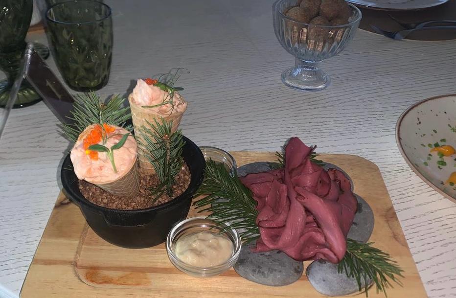 В меню: четыре сета закусок и горячих блюд (к примеру, конина копченая, мусс из речной форели, салат из марала с папоротиком, казы из конины, суп «Коочо»), различные напитки, десерт под таежный чай.