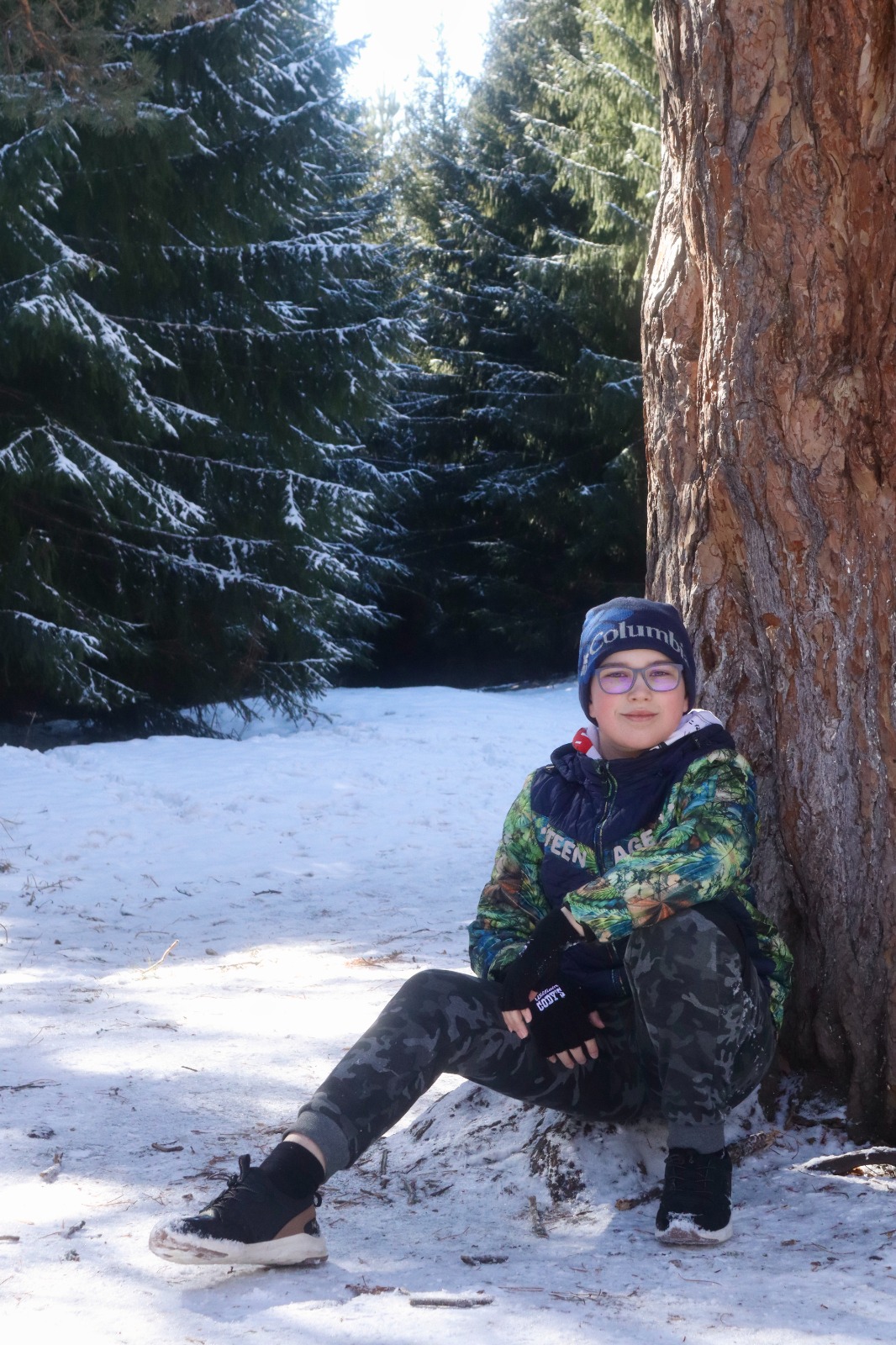 Отвлеклись на еду – даже слюнки потекли! После плотного перекуса мы отправились до конечной точки своего маршрута – Старой Мельницы. До нее мы шли около часа. По дороге пошел снег. Мы закольцевали свой поход и вернулись к санаторию «Катунь».