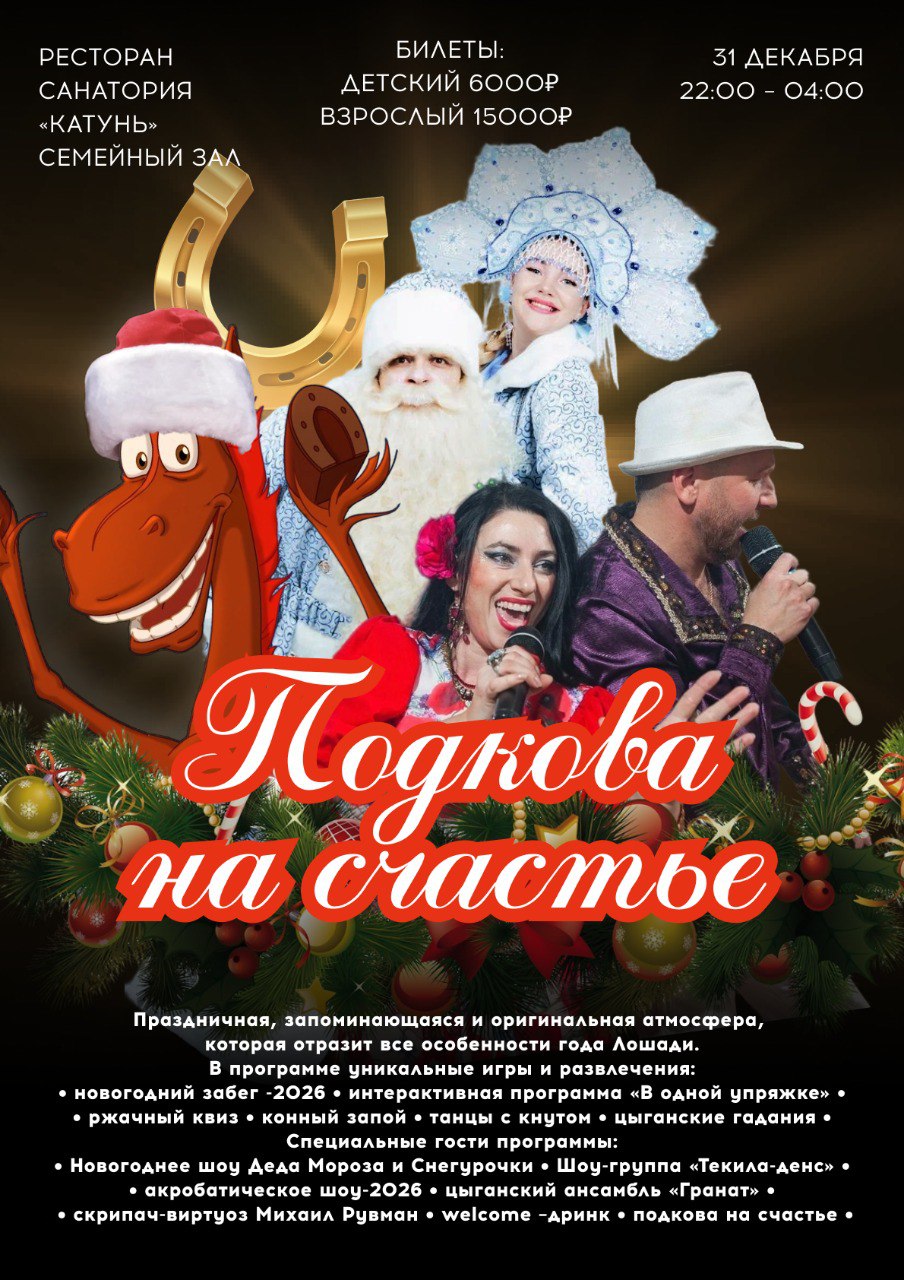 Эту программу высоко оценят любители музыкальных хитов периода с 70-х по нулевые, ведь эти треки будут основными в плейлисте диджея. Кроме зажигательных танцев под любимую многим музыку, гости смогут принять участие в песенном батле, посмотреть цыганское и барабанное пиксельное шоу, а еще – получить подкову на счастливый 2026 год.