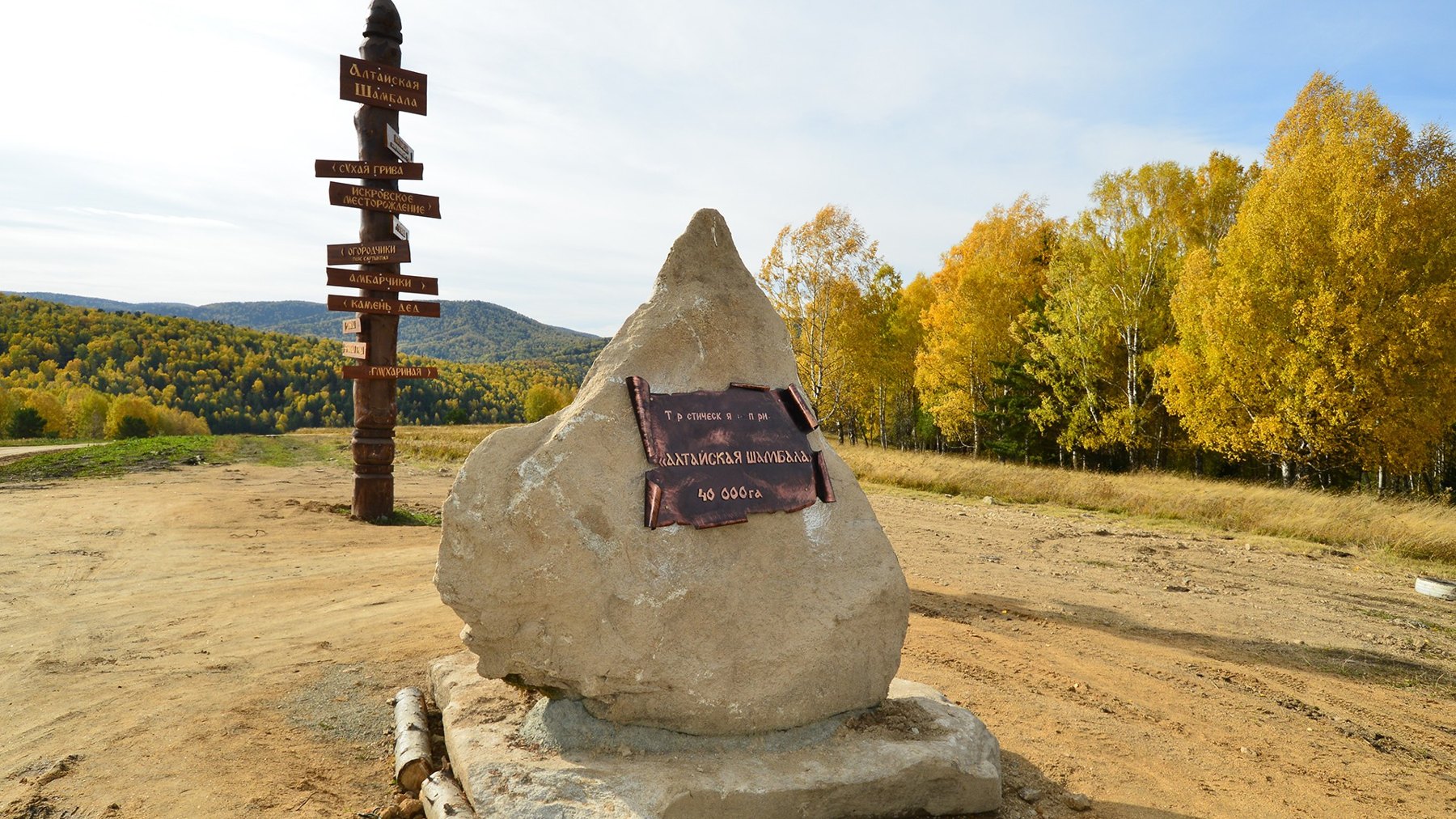 Сразу после подъема по серпантину вы оказываетесь в центре площадки, где расположен комплекс информационных щитов, рассказывающих об объектах туркластера. Отсюда во все стороны раскинулись туристические маршруты, по ходу следования которых размещено множество интереснейших арт-объектов. Деревянный столб с табличками указывает расположение достопримечательностей и направлений движения к ним.