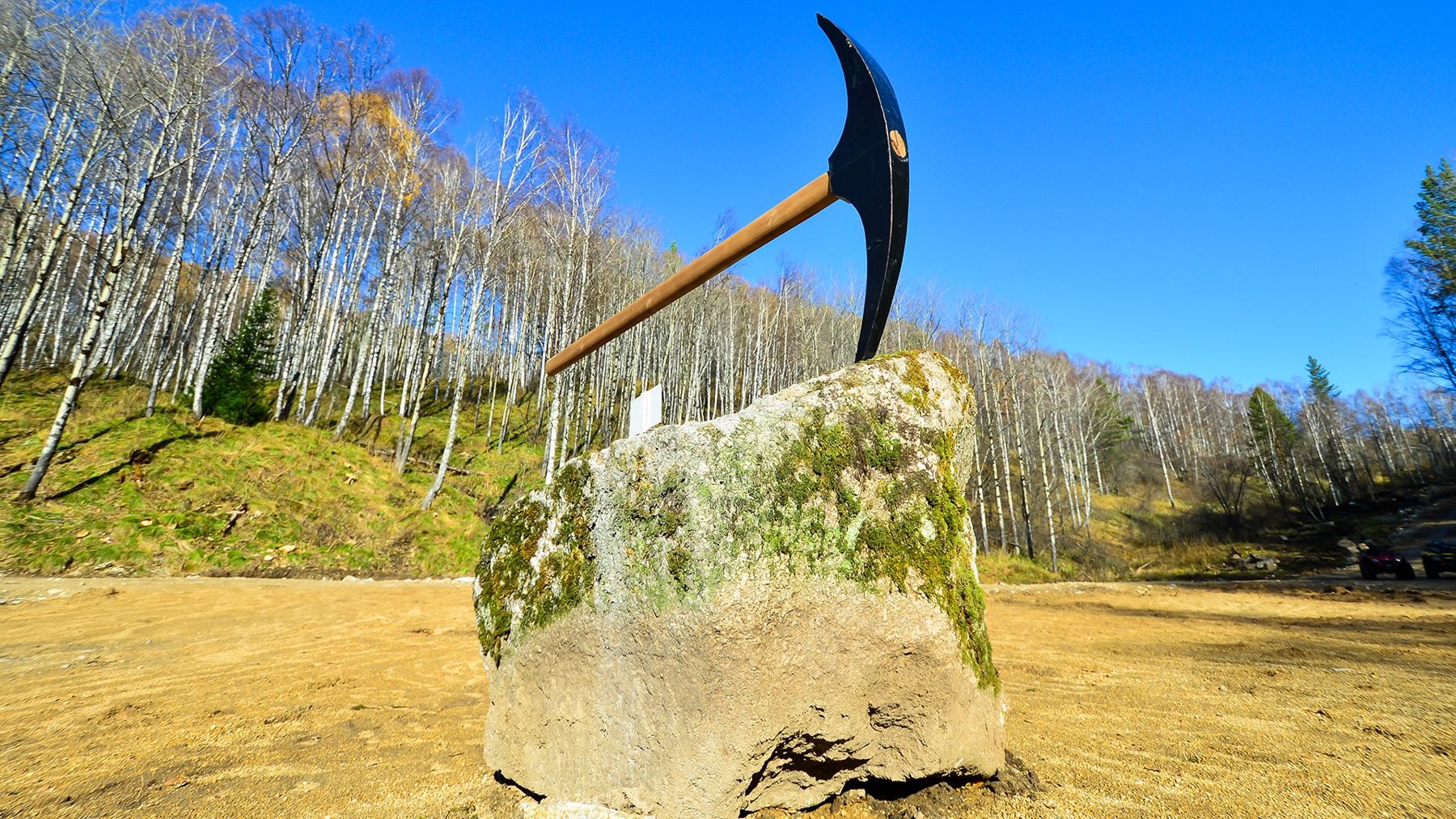 Сразу после подъема по серпантину вы оказываетесь в центре площадки, где расположен комплекс информационных щитов, рассказывающих об объектах туркластера. Отсюда во все стороны раскинулись туристические маршруты, по ходу следования которых размещено множество интереснейших арт-объектов. Деревянный столб с табличками указывает расположение достопримечательностей и направлений движения к ним.