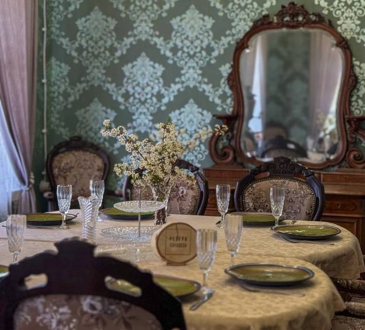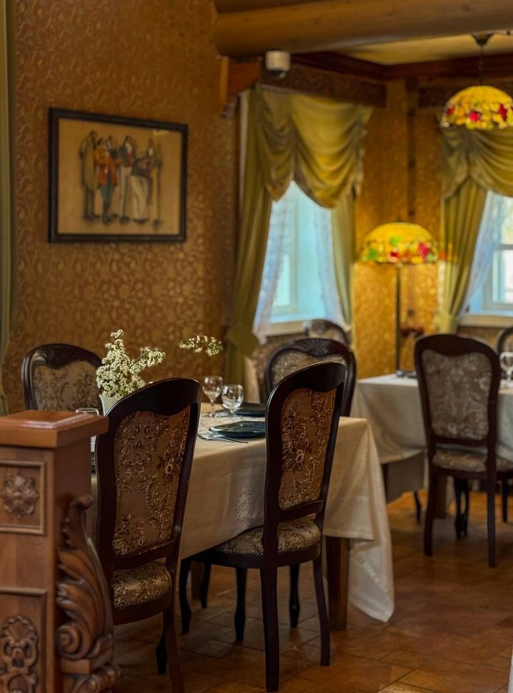 История ресторана началась в 2018 году, в интерьере сохраняется переплетение русских и украинских мотивов, обилие натурального дерева, старинная и стилизованная мебель, яркие обои и, конечно, коллекционные арт-объекты 19 века.
