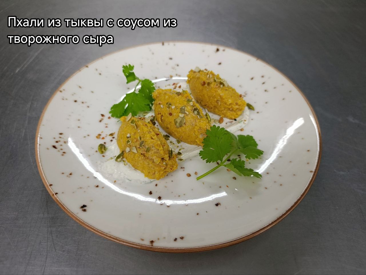 В списке блюд, которые отработали на мастер-классе, например, салат из свеклы с твороженным сыром, пхали из тыквы с соусом из твороженного сыра, салат из тыквы, лобио, салат из копченой говядины и хурмы, салат из свеклы с говядиной и копченым сыром, салат из фермерской индейки и копченого сыра, карбонад с соусом из тунца, палочки из цукини с соусом кимчи и другое.