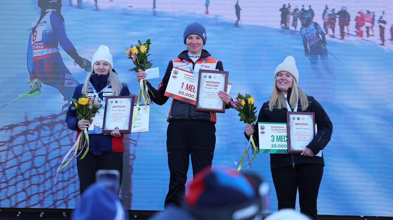 На сцену поднялись лидеры горнолыжного спорта страны. В их числе и Семен Ефимов. Спортсмен из Москвы, состоит в сборной России, на чемпионате выступал за Алтайский край и Московскую область.