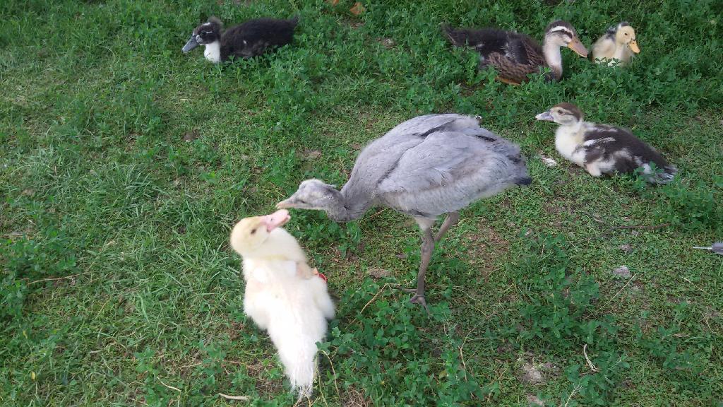 Малыш прекрасно себя чувствует в детском зоопарке «Сибирского подворья», очень общительный и ласковый. На вопрос «Как вы думаете, какой птицей он себя сознает?», работники подворья ответили: «Скорее всего, индюшонком. С индюшатами он проводит больше всего времени, это самые крупные из всех птенцы, хотя двухнедельному журавлю они всего лишь по пояс…».