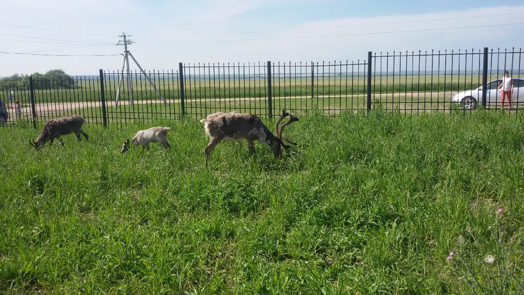 Рядом с «Сибирским подворьем» находится «Парк животных ледникового периода», в зоопарке которого детенышей не меньше. Вот мои любимые северные олени, семейство которых недавно пополнилось малышкой Маей. Счастливая семья на пикнике: