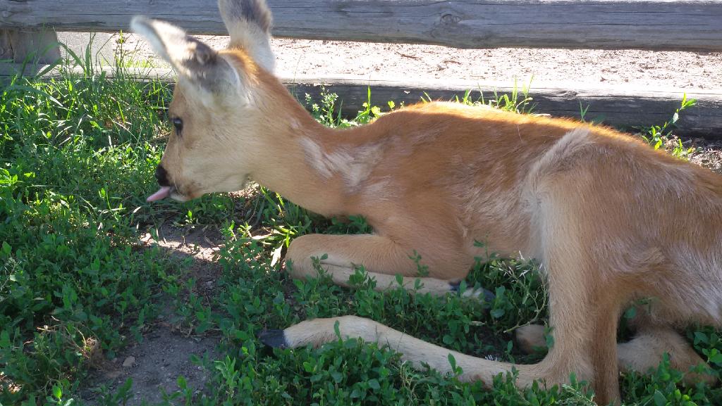 Знакомьтесь, это Бэмби. Бэмби — найденыш. Его нашли совсем малюткой, недалеко от Подворья (если вы не в курсе, вокруг Белокурихи водится много разных животных). Малыша запустили к пятнистым оленям, живущим на «Сибирском подворье», и теперь он считает их своими родителями. Хотя на самом деле Бэмби — сибирская косуля.