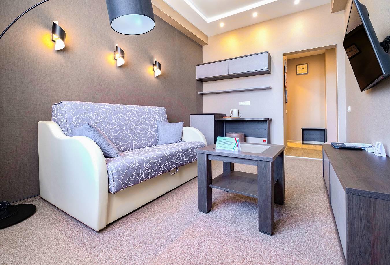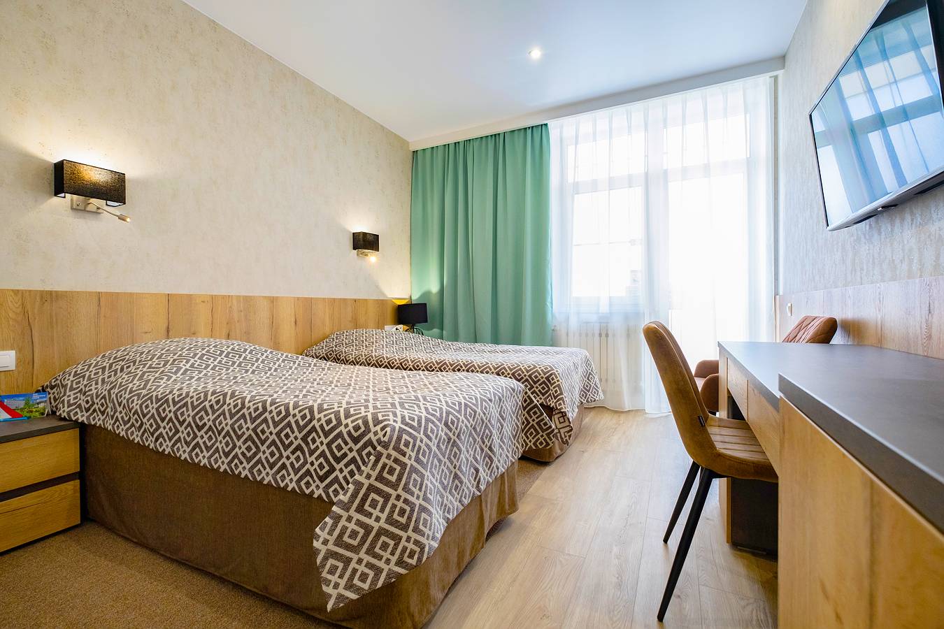 Номера этой категории рассчитаны на одного гостя. Неважно, решил ли он отдохнуть на курорте или приехал в Белокуриху решать деловые вопросы. Здесь есть все необходимое: двуспальная кровать шириной 160 см, удобное рабочее место, шкаф, холодильник, а также телевизор и кондиционер. При желании в номере может поселиться и второй гость – для него есть место на двуспальной кровати.